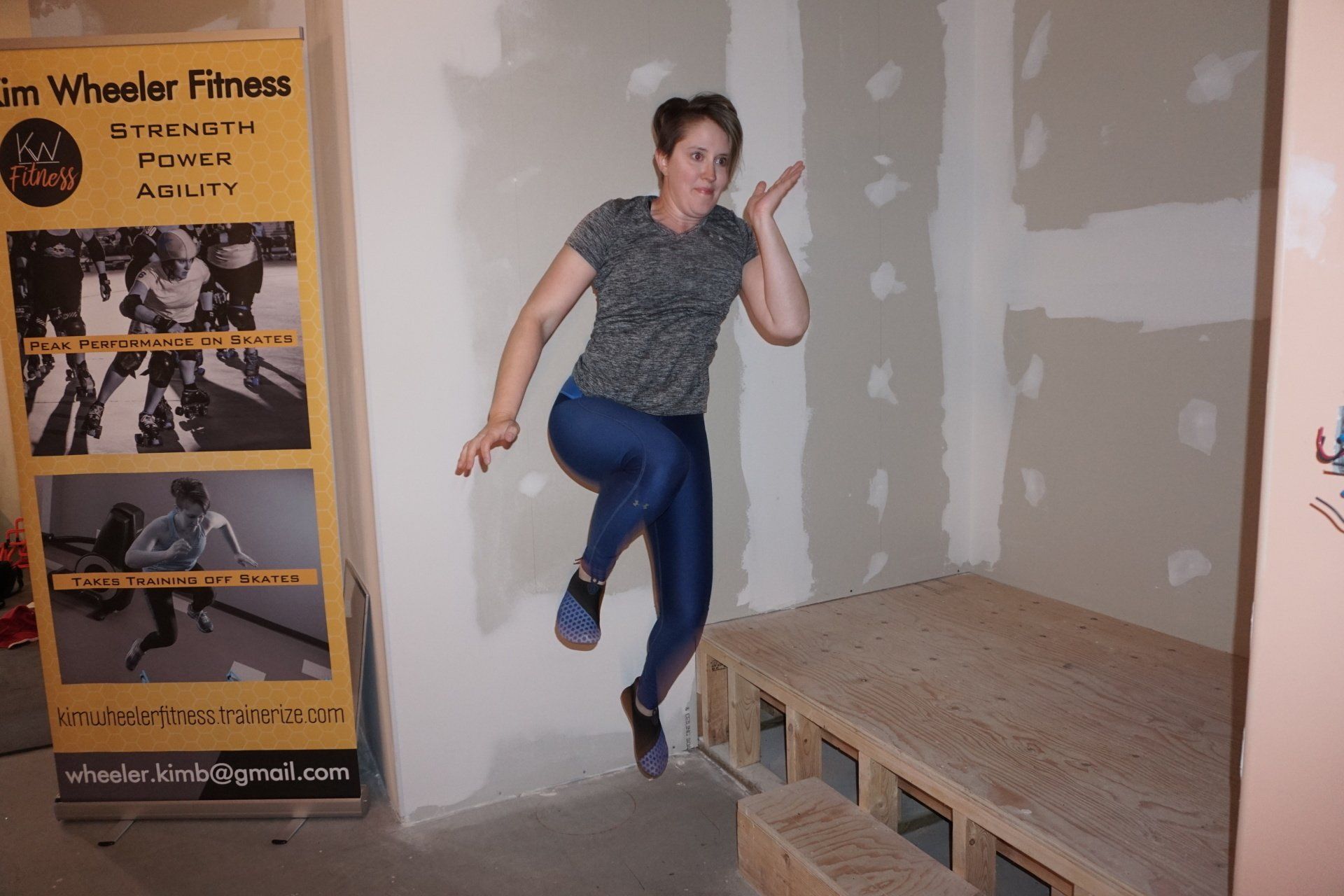 Next, fully relax your quads. Release all tension possible. Feels nice right? When you’re playing roller derby (any sport really) you want to have that relaxed muscle feeling at the start. Roller derby requires you to quickly and unexpectedly change directions and speeds. You need your body to start off nice and loose so you can engage the right muscles at the right time. If you are constantly tense, your reaction to change will be slow.